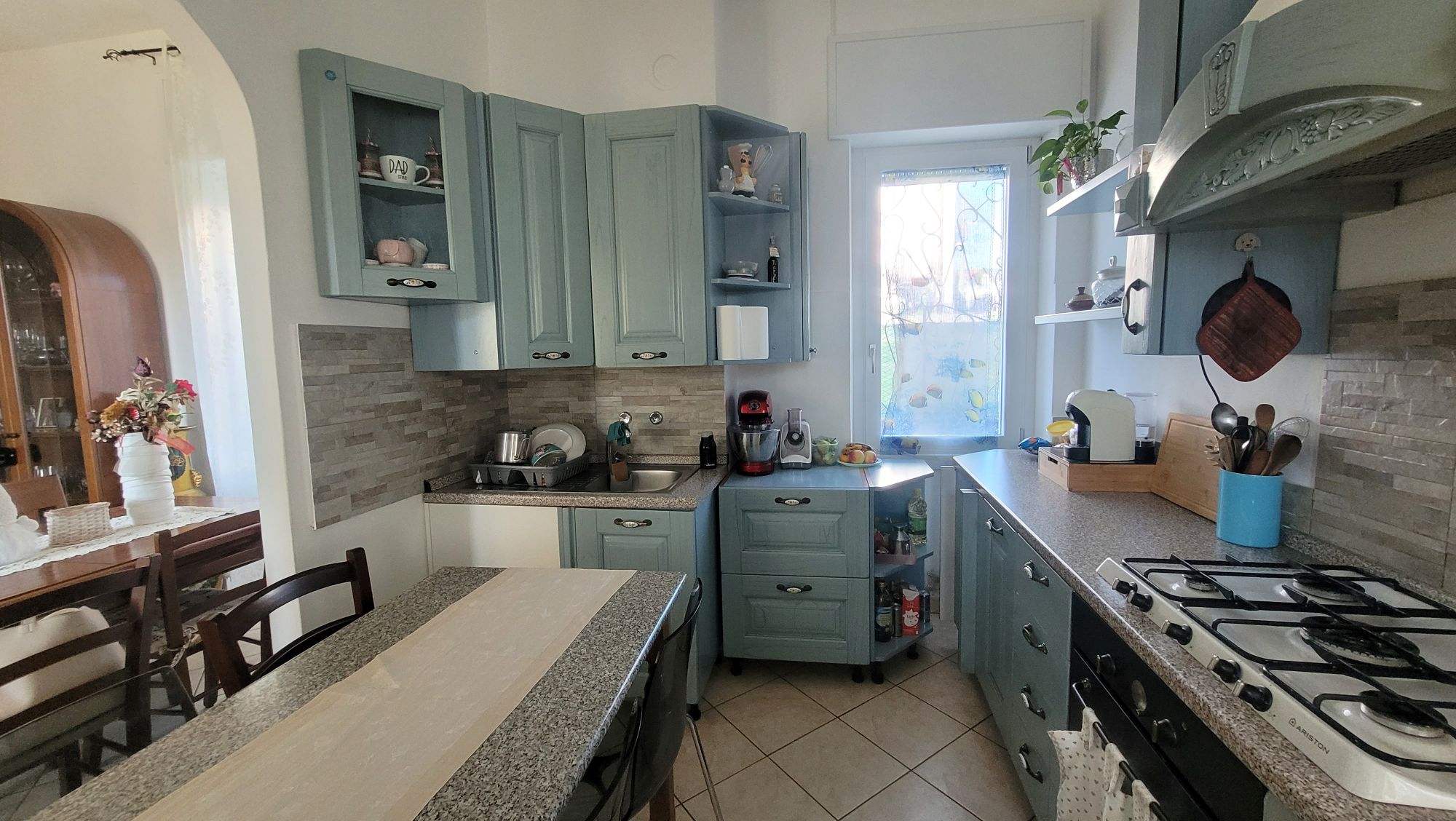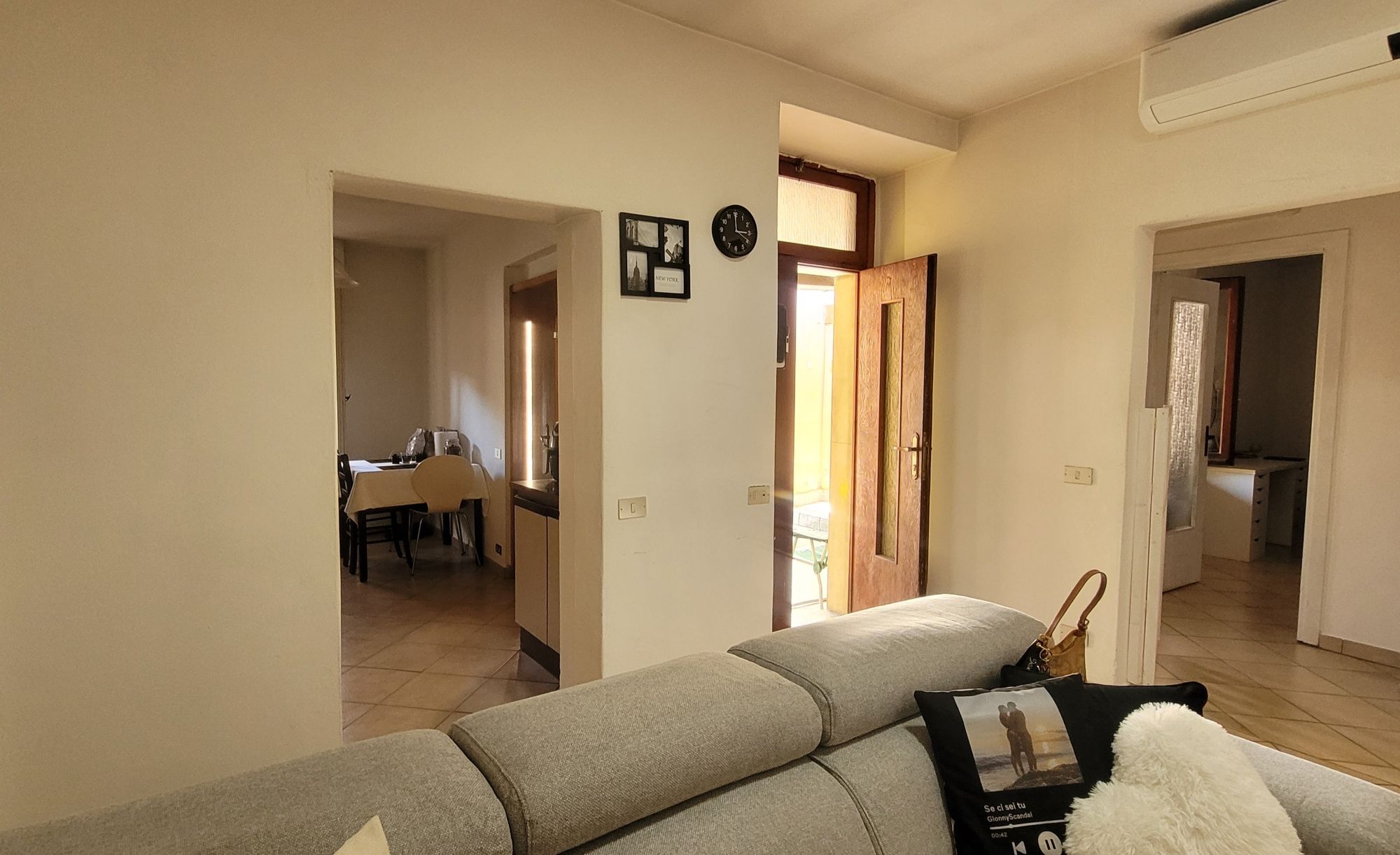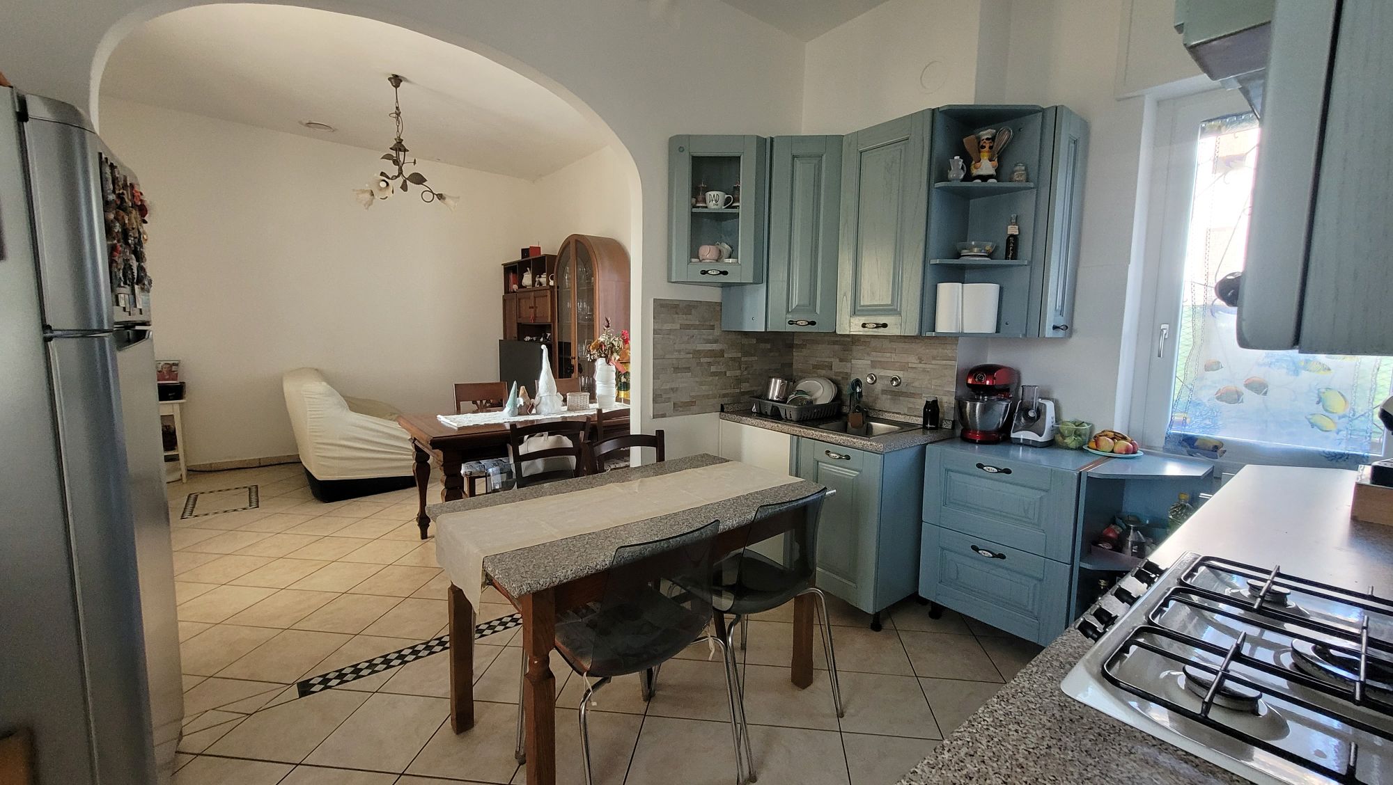 – Primo appartamento di circa 111 mq, posto al primo piano con terrazzo d’ingresso, soggiorno, cucina abitabile a vista, due camere matrimoniali e servizio con doccia. Tutto recentemente ristrutturato con tetto rifatto 2 anni fa. Al piano terra ampio locale lavanderia/caldaia;