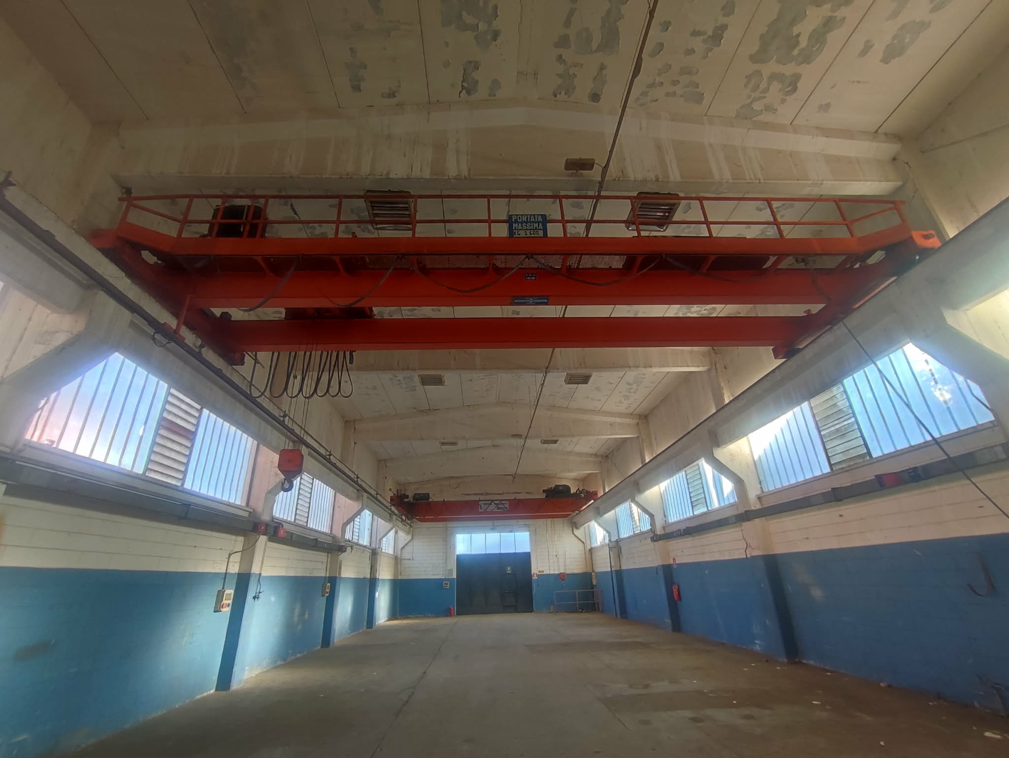 E’ posto al piano terra, campata unica, h 6.50 m, mensole per carro ponte e due carri ponte installati della portata di 10 t, ufficio e servizi igienici con docce e spogliatoio.
